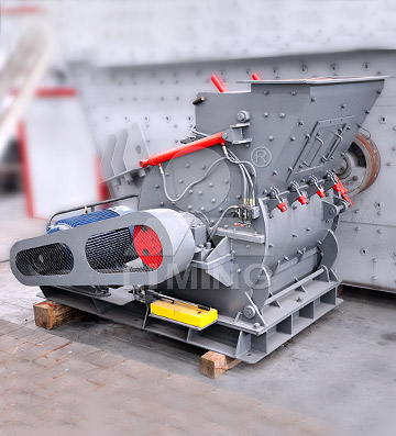 白云石大塊物料經破碎機破碎到能進入磨粉機的入料細度(15mm-50mm)。