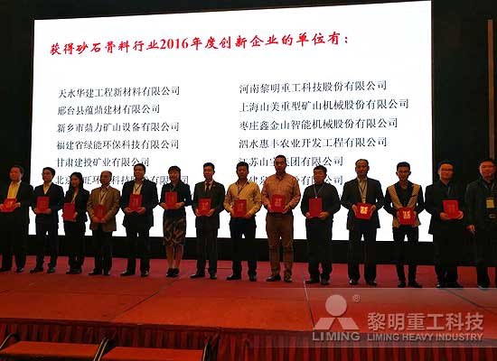 近日,由中國砂石協會主辦的第三屆中國國際砂石骨料大會在廣州召開,黎明重工與國內外砂石骨料行業專家、學者一起,探索了砂石骨料工業發展新模式,并就如何推進砂石骨料工業轉型升級等方面進行交流。此次會議,黎明重工榮獲2016年度砂石骨料行業創新企業獎、2016年度砂石骨料行業企業家獎。同時,四篇論文入選第三屆中國國際砂石骨料大會論文集。