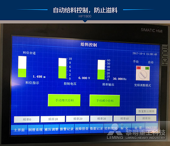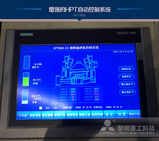 · 便捷的操作維護,加入潤滑回油流量監(jiān)測、水平軸轉(zhuǎn)速監(jiān)測、振動監(jiān)測、自動給料控制等自動化功能,延長設備使用壽命,使破碎系統(tǒng)具有更穩(wěn)定更智能的運行能力。