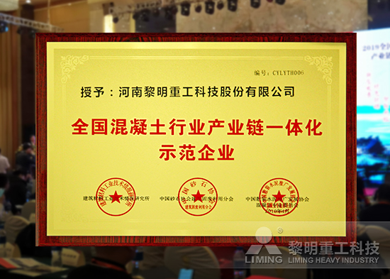 黎明重工獲“全國(guó)混凝土行業(yè)產(chǎn)業(yè)鏈一體化示范企業(yè)”殊榮
