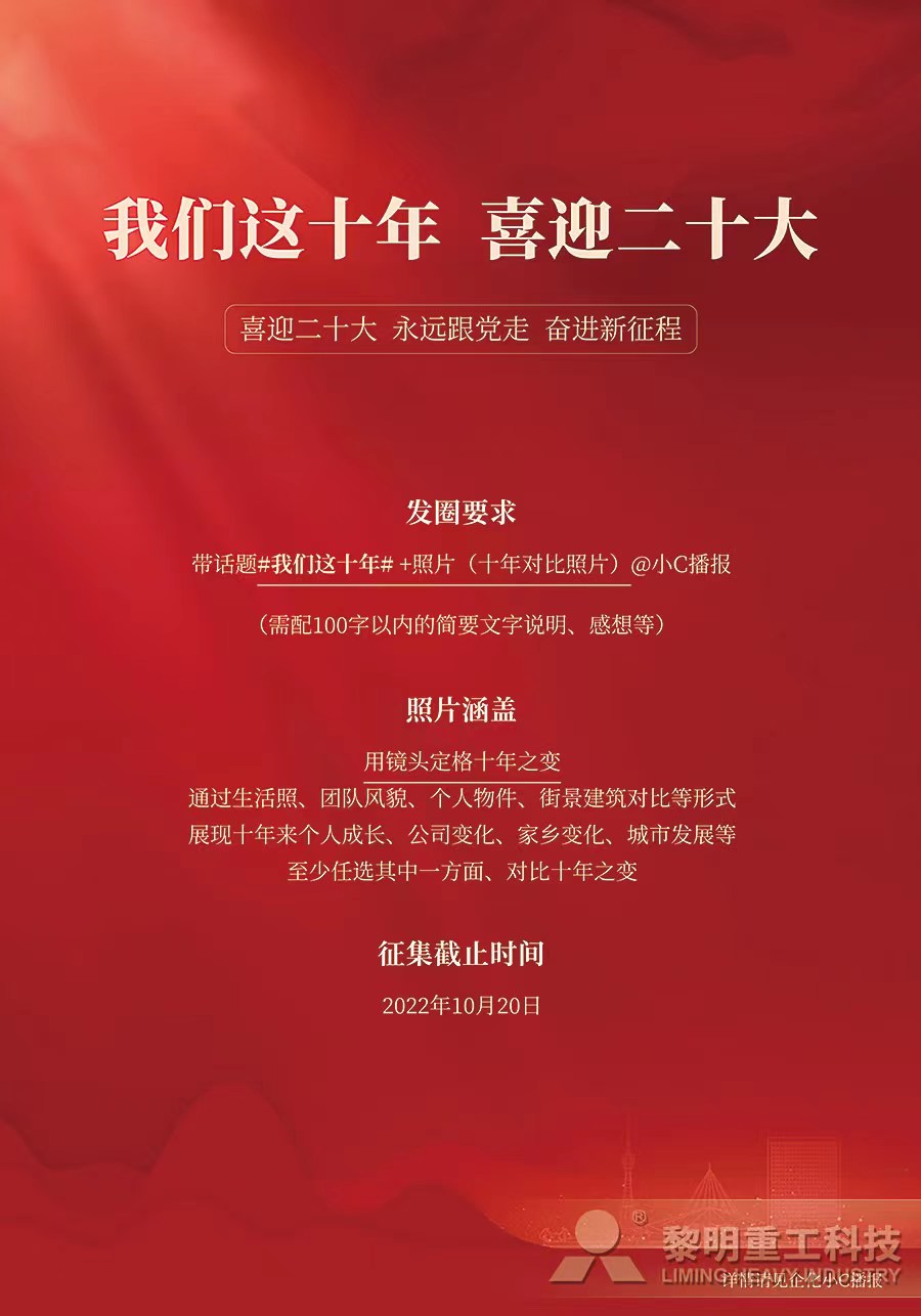 黨的二十大是在關鍵時期召開的關鍵會議,習近平總書記的講話是我們邁上全面建設社會主義現代化國家新征程、向第二個百年奮斗目標進軍的前進引領。開幕會結束后,黎明重工黨委積極響應上級黨組織號召,在企業內部掀起學習貫徹黨的二十大精神熱潮:動員全體黨員從自身角度出發,發表對二十大報告的學習心得、反向反應,要求黨員把思想和行動統一到二十大精神上來,矢志不渝、篤行不怠,踔厲奮發、勇毅前行;在企業內部發起“我們這十年,喜迎二十大”互動討論,組織黨員和群眾以個人視角感知并記錄十年來,個人、企業、家鄉或者國家的變化,以此激勵大家不忘初心、肩負責任、踐行使命;同時,在二十大召開前夕,發動各位黨員拍照打卡,送出對黨和國家的殷殷祝福,并以此為動力,以更飽滿的熱情投入新階段工作。