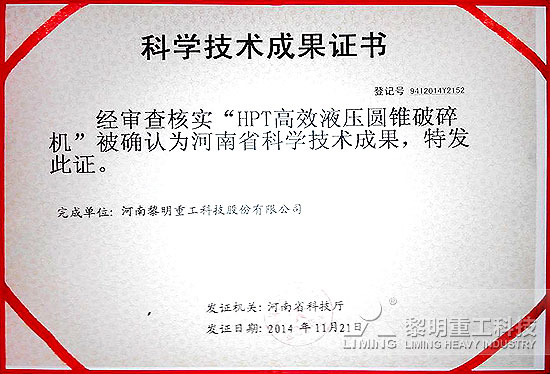 黎明重工 > 新聞中心 > 集團新聞 > 展前捷報:HPT液壓圓錐破、LUM超細立磨榮獲科學技術成果證書