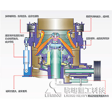 破碎沖程、破碎速度和破碎腔型的良好結(jié)合,比彈簧圓錐破的產(chǎn)量高35%-60%。