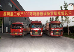 • 2012年9月20日,黎明重工舉行了該項目的首批發貨儀式,在生產、研發、供應、質檢、技術服務等部門的通力配合下,順利完成了設備的設計、試驗、制造、檢驗等一系列工作,年產300萬噸的歐版磨粉機設備按時交付客戶現場。